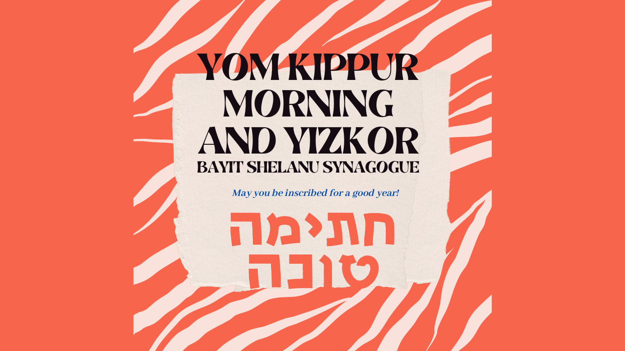 Yom Kippur — Thursday, October 2, 10:00am – 12:45pm: including Yizkor